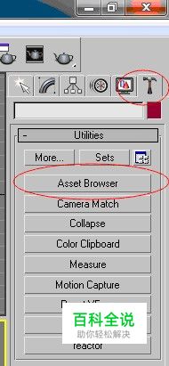 打开max在右边找到小锤(实用工具),在小锤下面找到资源浏览器。