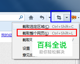 在浏览器上安装一个截图插件。ps:我用的是火狐浏览器。在火狐浏览器上找到如图中蓝色框中位置(在浏览器右上角位置),然后选中截取整个网页即可。
