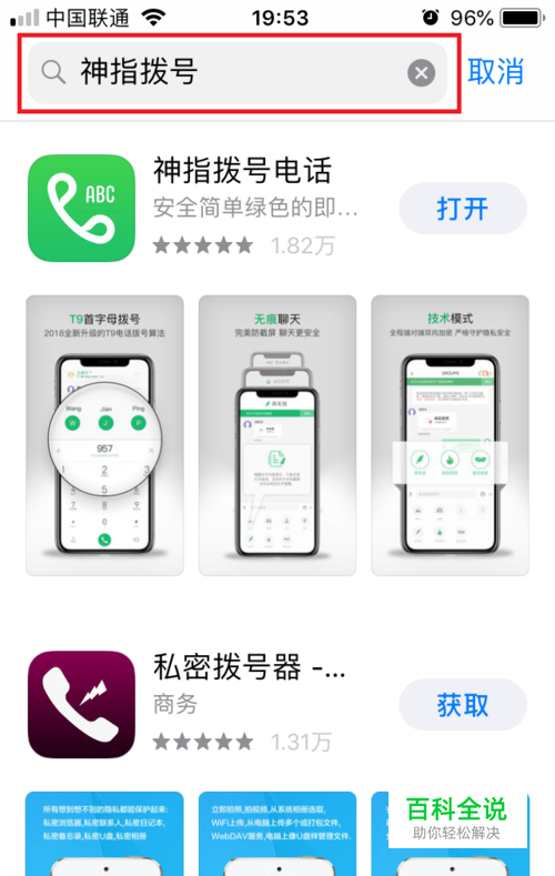 在搜索栏输入“神指拔号”