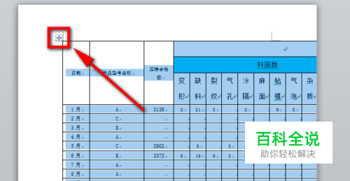将excel粘贴到word之后,将鼠标移动至表格的做左上方位置就会出现图示的图标,点击鼠标左键不放,向左移动,鼠标移动至能够全部显示出表格为止。