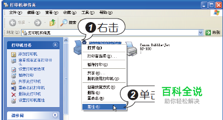 进入“打印机和传真”窗口,右击打印机图标,在弹出的快捷菜单中单击“属性”命令,如下图所示。