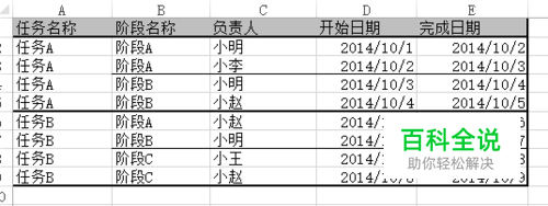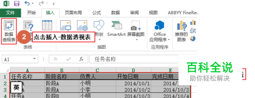 先做一个需要统计的任务管理Excel并插入数据透视表 任务:有任务A和任务B,每个任务在细分任务阶段和负责人