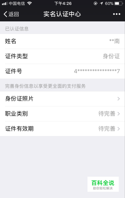 查看认证姓名,以及身份信息等情况。