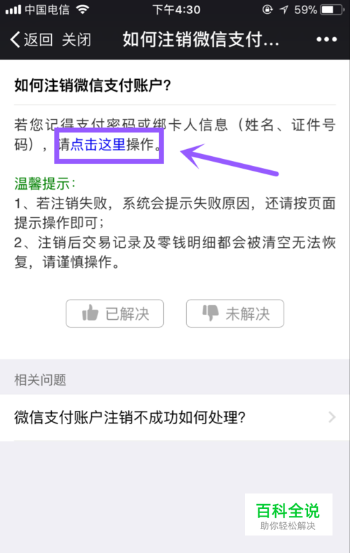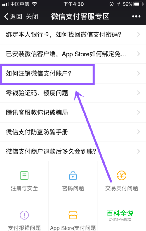 找到问题“如何注销支付账户”,点进去