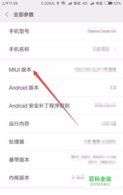 这时会打开全部参数窗口,在窗口中连续点击“Miui版本”七次,就可以开启小米手机的开发者模式了。
