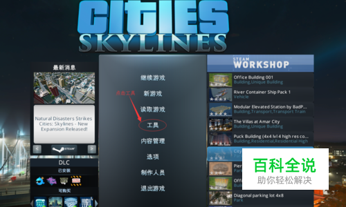 首先我们打开城市天际线,在初始界面菜单中我们选择工具选项,进入工具才后后找到资产编辑器,选择新建,后一个画面我们随便挑选一个主题店右下角的选择,进入载入画面。