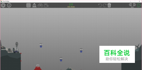本关属于难度较大的关卡,难点主要在于4个检查点不在一条线上,导致我们需要制造一条S型上下弯曲的桥梁,而且本关的跨度较大。