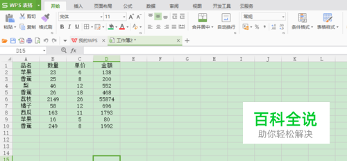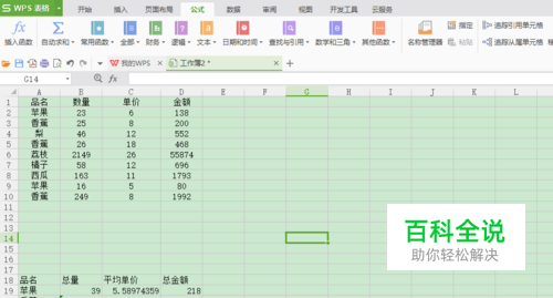 在表格中输入需要求和的品名,尽量不要有重复项,一般数据量大的时候看不过来可以选择分类汇总一下。