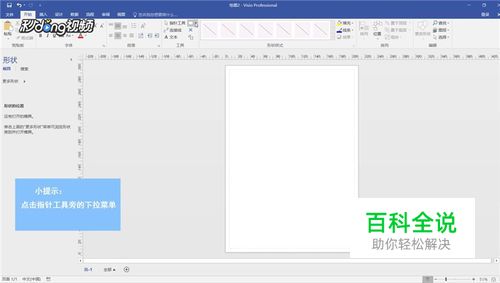 首先打开Visio软件,点击左上角开始,点击指针工具旁的下拉菜单, 选择线条。