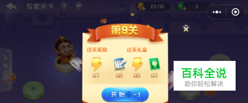 玩家如果能通过残局闯关专家模式第9关的关卡,会得到记分牌×2、体力×2、提示卡×1的奖励。