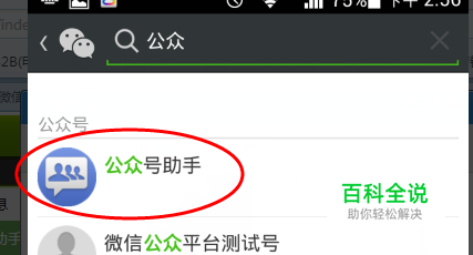 然后在个人微信号上面搜索公众,即可点击进入公众号助手。