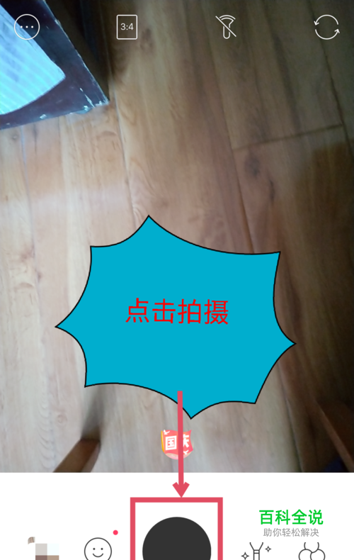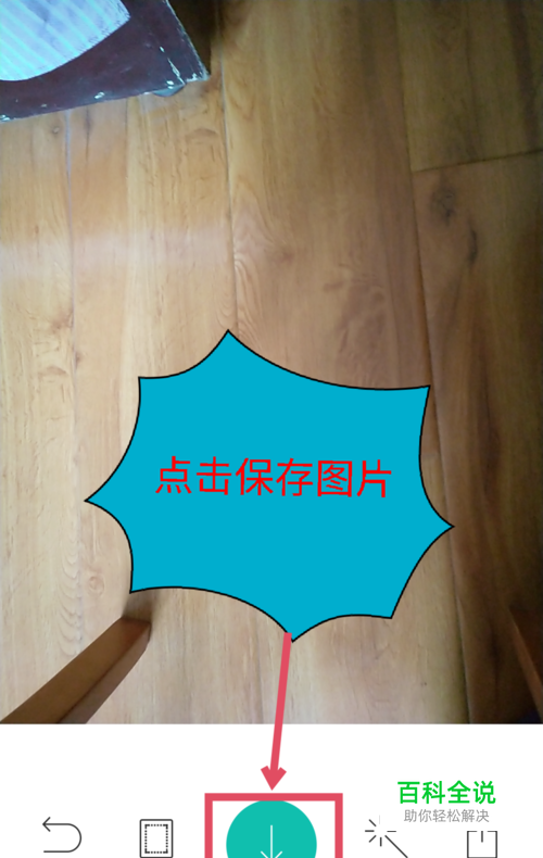 点击拍摄后,在照片的底部有个向下的箭头选项,就是保存选项,点击箭头保存图片。如图所示