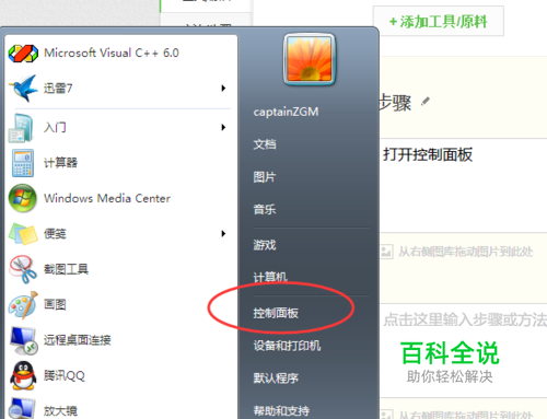 打开控制面板