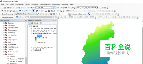 本次的示例数据为山西省年降雨量,降雨量栅格数据重低值到高值分步,显示符合审美观念,但是这样的显示在具体地理分析中不是很需要,有时需要将其划分具体的几类。