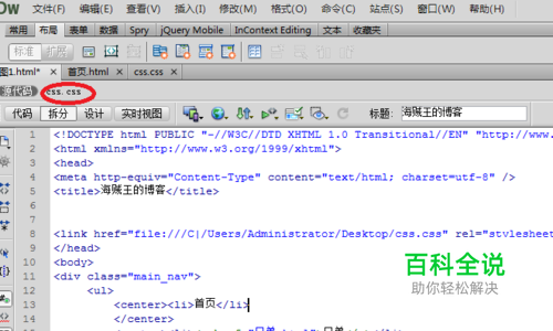 2.点击文件,新建,出现如下页面。点击css,选择新建,并保存css文件(此处保存在桌面).