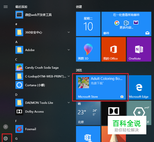 第一步在win10系统任务栏上,点击开始菜单,选择windows设置图标,如下图所示: