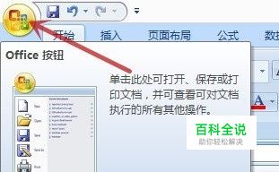 用鼠标左键单击界面左上角的“office 按钮”(图中红色箭头所指)
