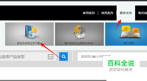 进入品牌网站,打开【服务与支持】菜单下的【驱动下载】