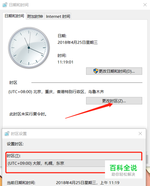 这里也有另一种修改系统时区的方法,打开控制面板,找到日期与时间设置,点击更改时区,就可以直接选择东九区,点击确定即可。