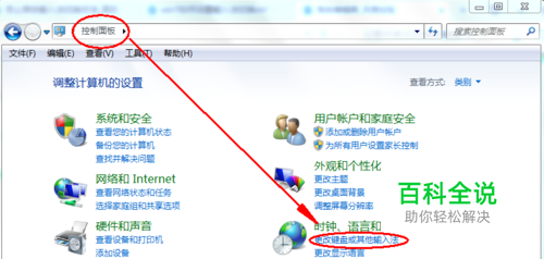 首先,打开“控制面板”,点击“更改键盘或其他输入法”