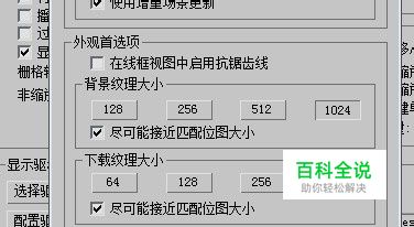 将背景纹理大小设置为1024,并点开下面尽可能接近匹配位图大小。将下载纹理大小设置为512,也点开下面的尽可能接近匹配位图大小。就ok了。