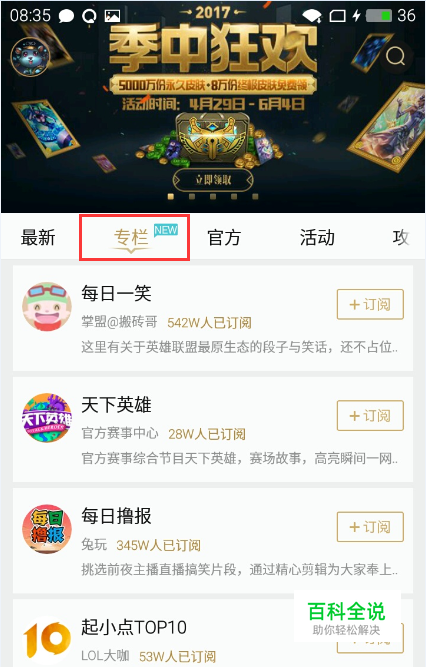 LOL掌上英雄联盟怎么订阅