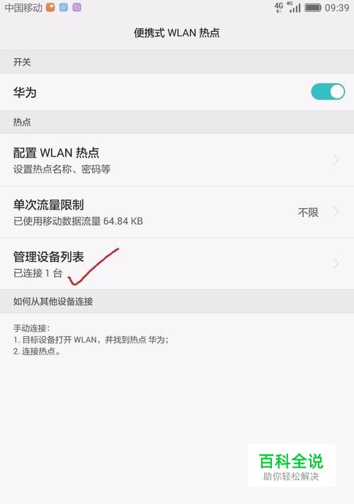 点击配置WLAN热点→更改好记的名字(华为)→设置密码保存→打开热点。