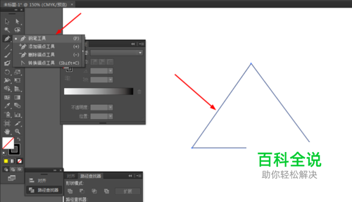 在Ai软件中,新建一个800*800的文档,选择钢笔工具,勾出一个三角形,如图所示