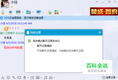 打开一个需要备份的聊天窗口。可以看见有一个“启用云消息服务”的提示(如图) 点击“启用”就开了一个小窗口。
