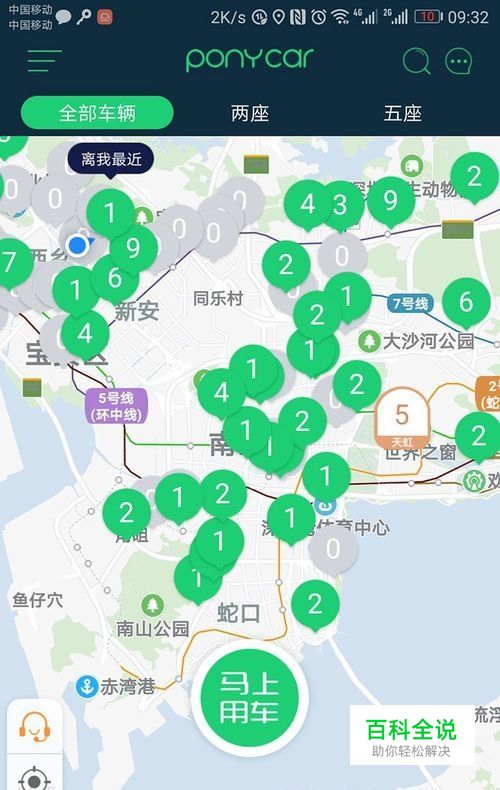 点下方大按钮马上用车,或点击提示的最近绿色图标
