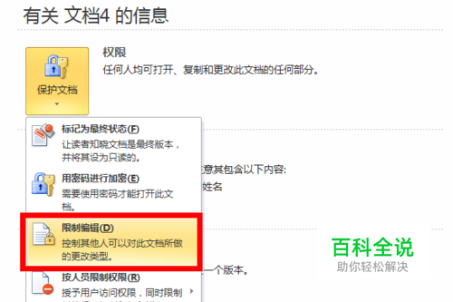 在下拉菜单中选择限制编辑