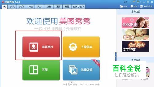 打开美图秀秀以后,点击美化图片,进入后点击打开一张图片