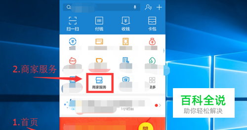 打开并登录到手机支付宝中,跳转到支付宝的首页,也就是支付宝的主页面,找到 商家服务图标,点击进入商家服务。