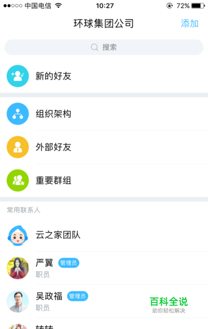 通讯录包括查看组织架构,查找联系人,外部好友管理,设置的重要群组,添加同事,查看联系人信息,还能跟新同事打招呼哦。