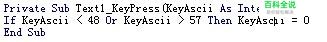 开始写入代码 If KeyAscii < 48 Or KeyAscii > 57 Then KeyAscii = 0 我们用的就是这行代码,通过对ascii的限制来限制按键的效果