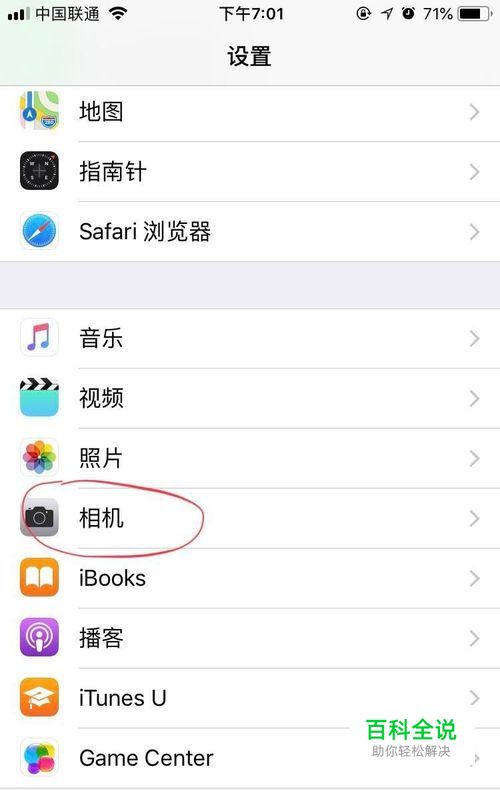 在打开的页面中,出现了很多选项,往下拉,仔细看,会有一个“相机”选项,选中,打开。