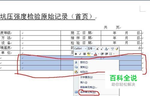 连着敲出三格,然后选中下图中我所选的格子,并按右键,选择“合并单元格” ,这样刚刚选择的格子就合并成一个了。这个命令在用word做表格时经常用。