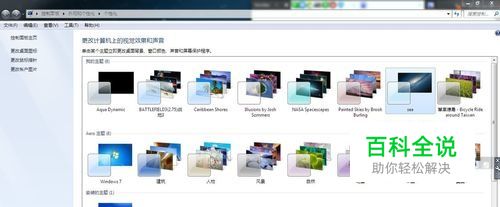 首先要保证我们选用了Aero主题;方法:桌面--右击--个性化;从出来的页面中查看本电脑有没有安装相应的主题;如果没有,可以从网上自行下载。
