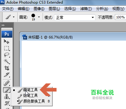 点选弹出菜单中的“画笔”,调出画笔预设界面。