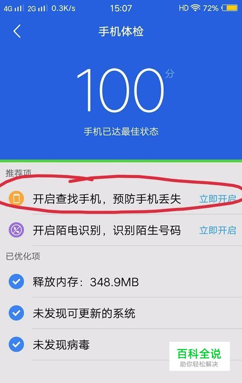 然后你可以进行对手机扫描检测,系统会提示你还未开通手机定位功能,我们点击打开,打开后我们查找手机进行开启。