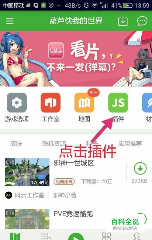 先打开葫芦侠我的世界,点击插件,搜索像素,搜索出来有两个结果,下载第二个