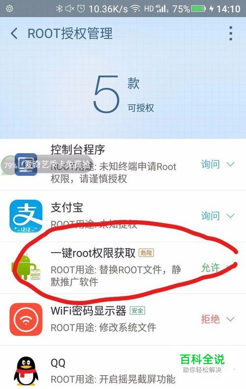 首先的手机里面需要安装360超级root、一键root获取。先打开360超级root,允许你安装的一键root获取root权限,设置完成以后再打开一键root获取