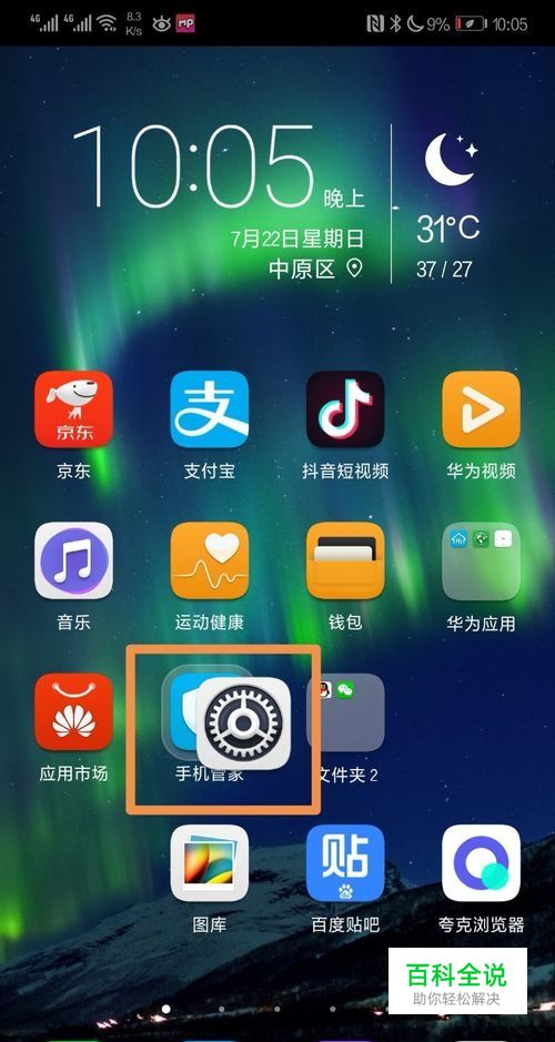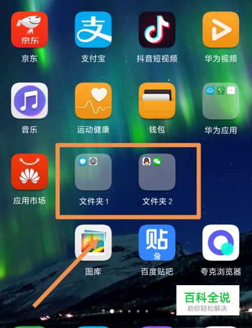 打开我们的华为手机,解锁进入后,我们将任意的应用图标,拖动到另一个应用图片之上。