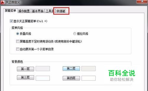 2、打开的“天正快捷键”面板,它的右边有个“快捷键”选项,打开“快捷键”;
