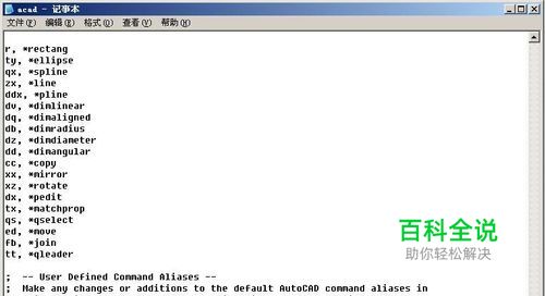 此时会弹出一个名为ACAD的文档,任意一行就可以添加快捷键定义