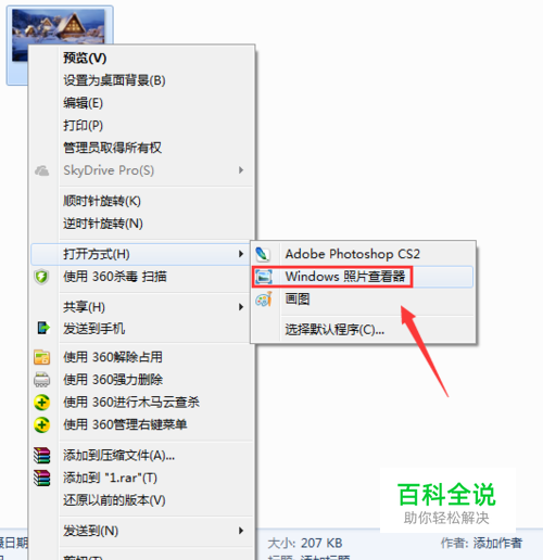 第二步:选择打开方式以后,在新菜单里面,选择windows照片查看器打开图片