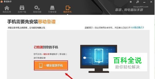 手机连接成功之后,软件底部会有显示手机型号,然后点击“一键安装到手机”