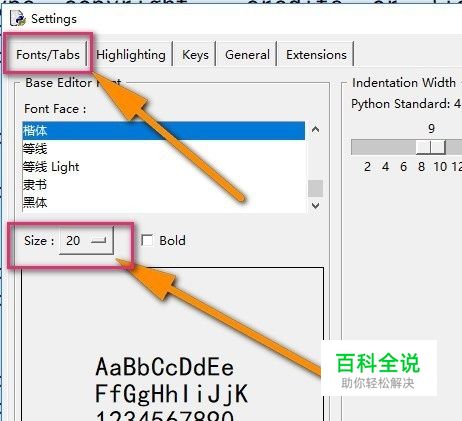 然后点击“Font/Tabs”,这样自然就能看到Size了,Size便是对字体设置的按钮了。但是最大只有22,不过字体大小也是够用了哦。