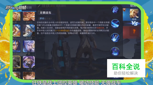 狂铁是战士团控英雄,被动技能是无畏战车,武器在击中敌人时会激发电流,进而为武器充能。