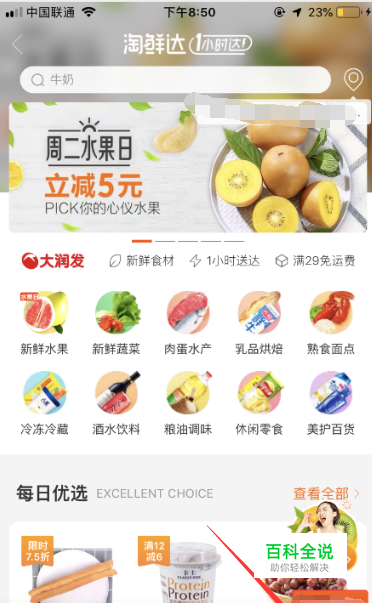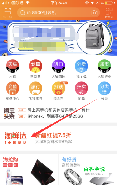 首先打开我们的手机淘宝app,如下图所示等待系统进入到首页页面,点击页面中间的淘鲜达,进入淘鲜达页面。